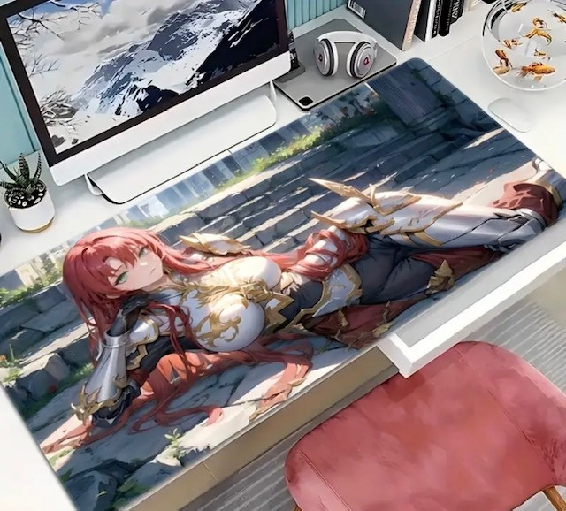 Великий килимок для миші з дизайном аніме дівчини в обладунках, розмір 60/30